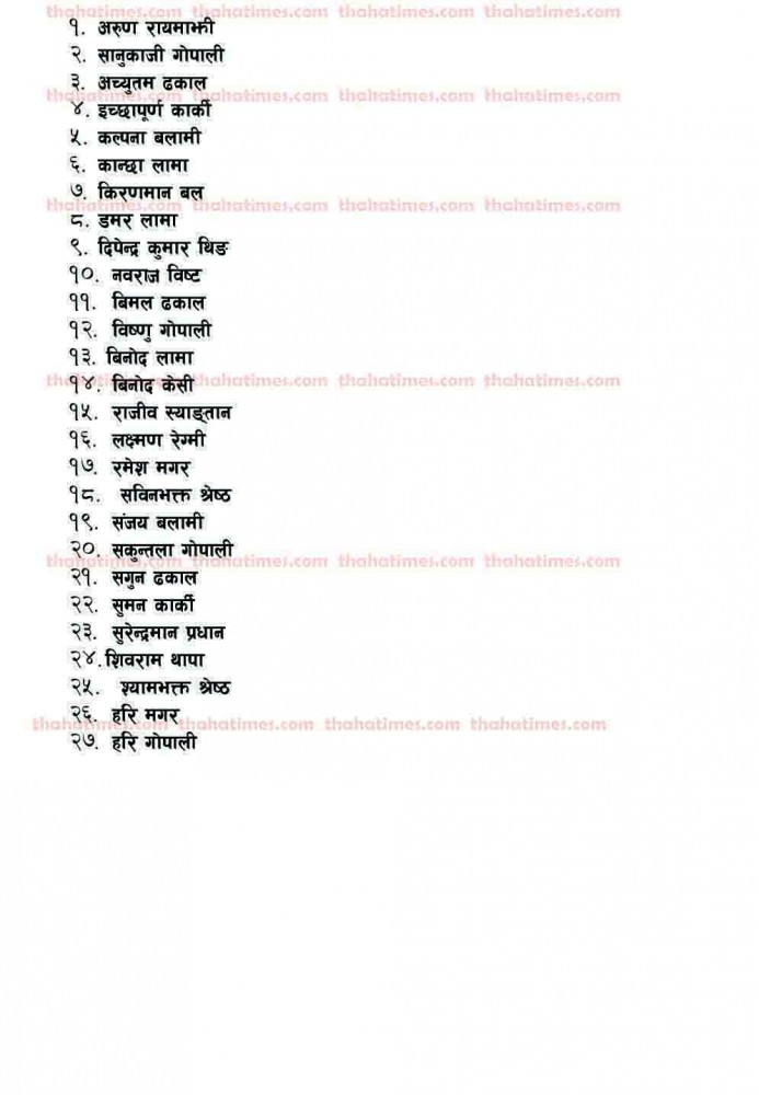 नेकपा थाहानगर सचिवालय घोषणा (को–को परे हेर्नुहोस् नामावली ?