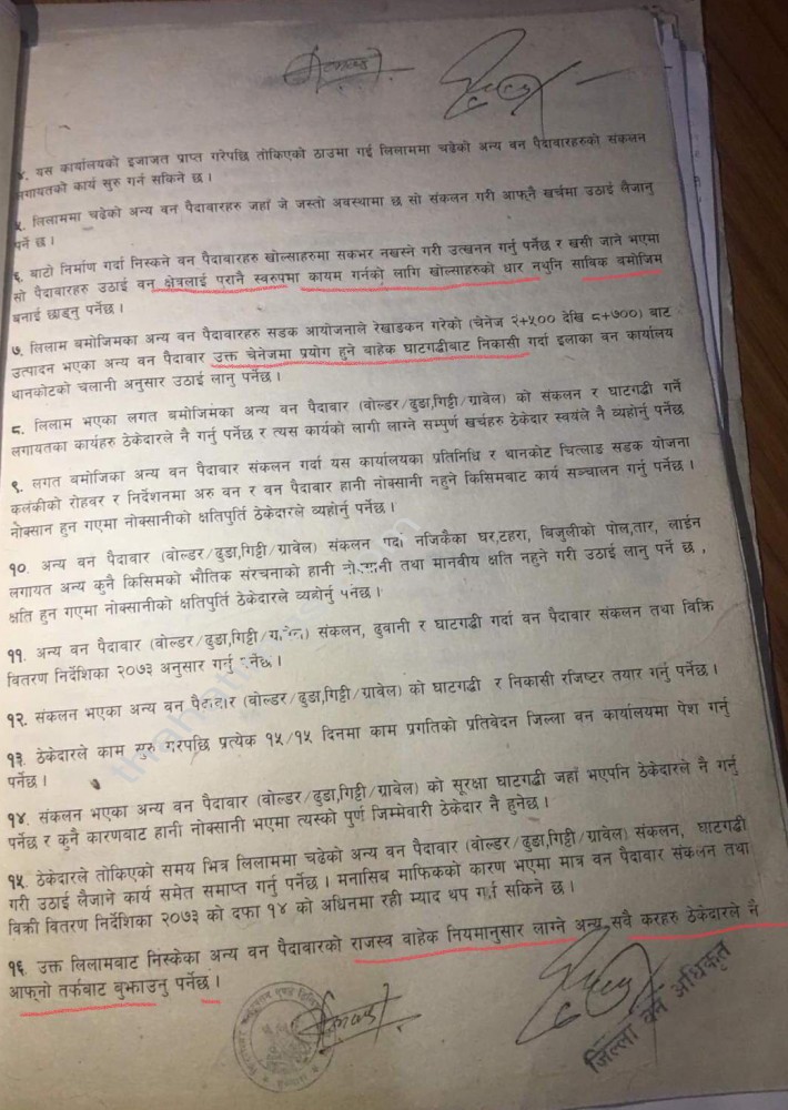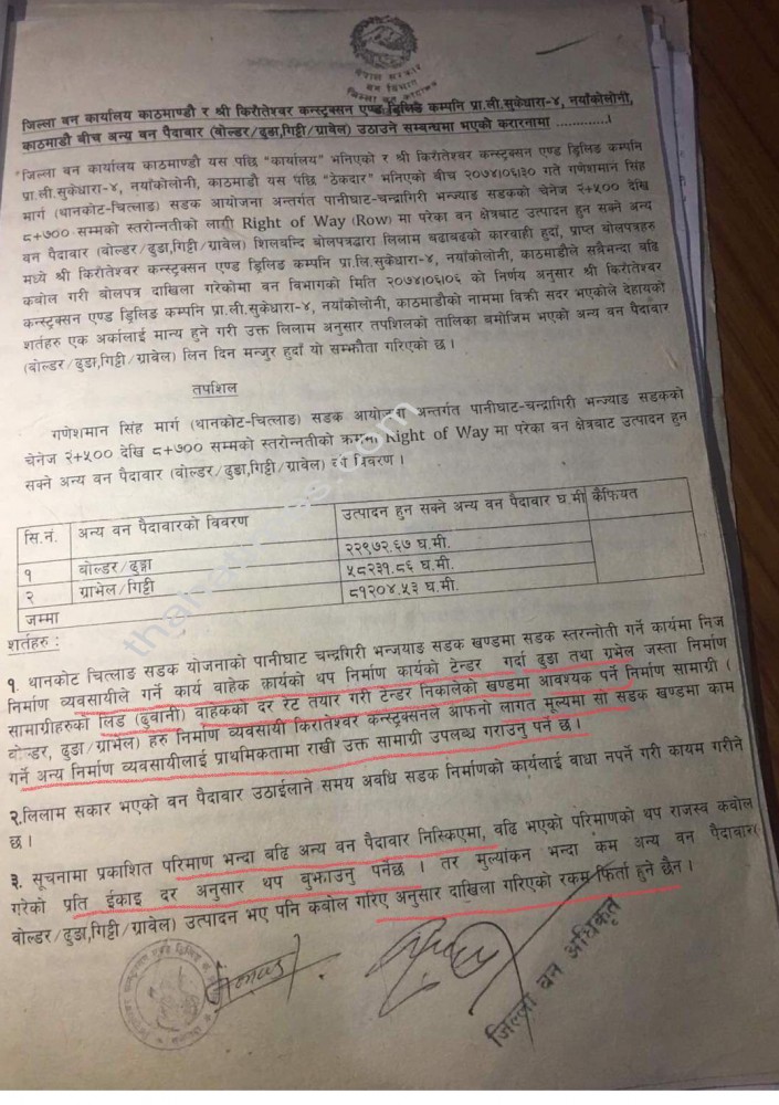 हेर्नुहोस् वन कार्यालय र ठेकेदार कम्पनीबीचको सम्झौता :