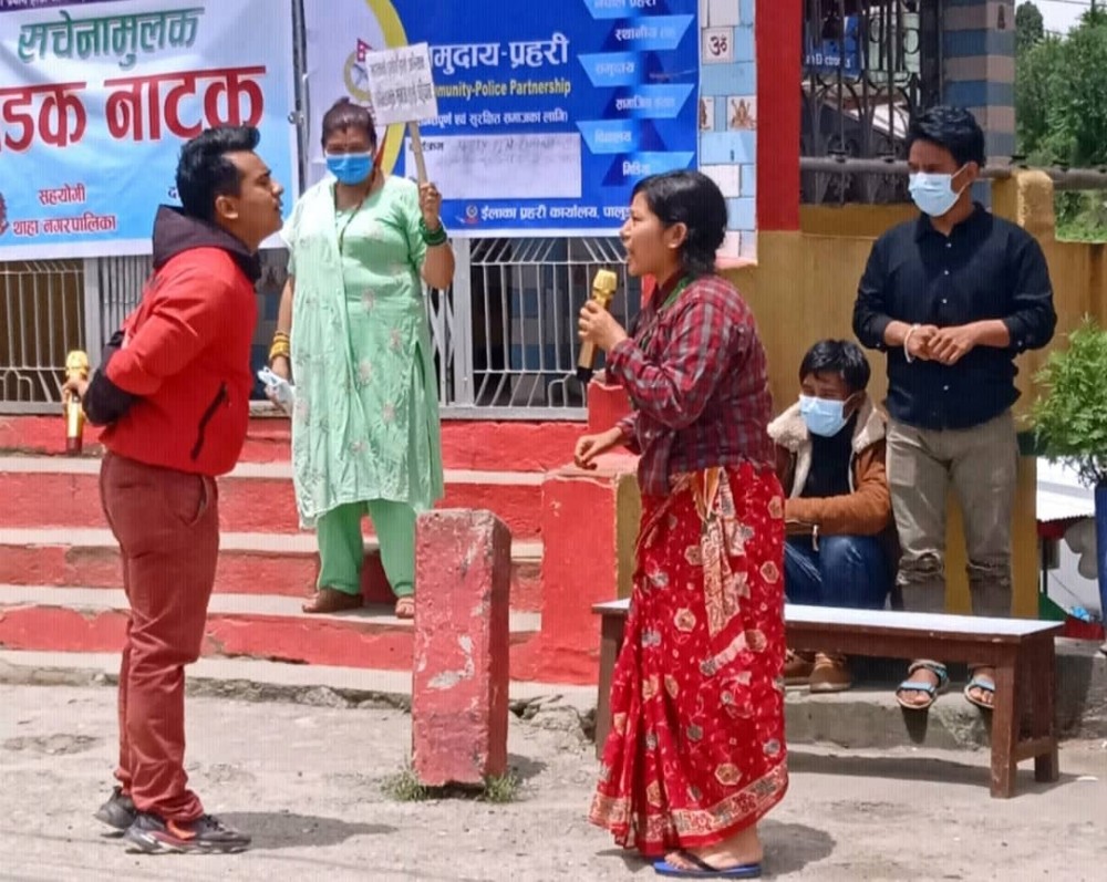 थाहाको पाँच स्थानमा कोरोनाविरुद्ध सडक नाटक प्रदर्शन