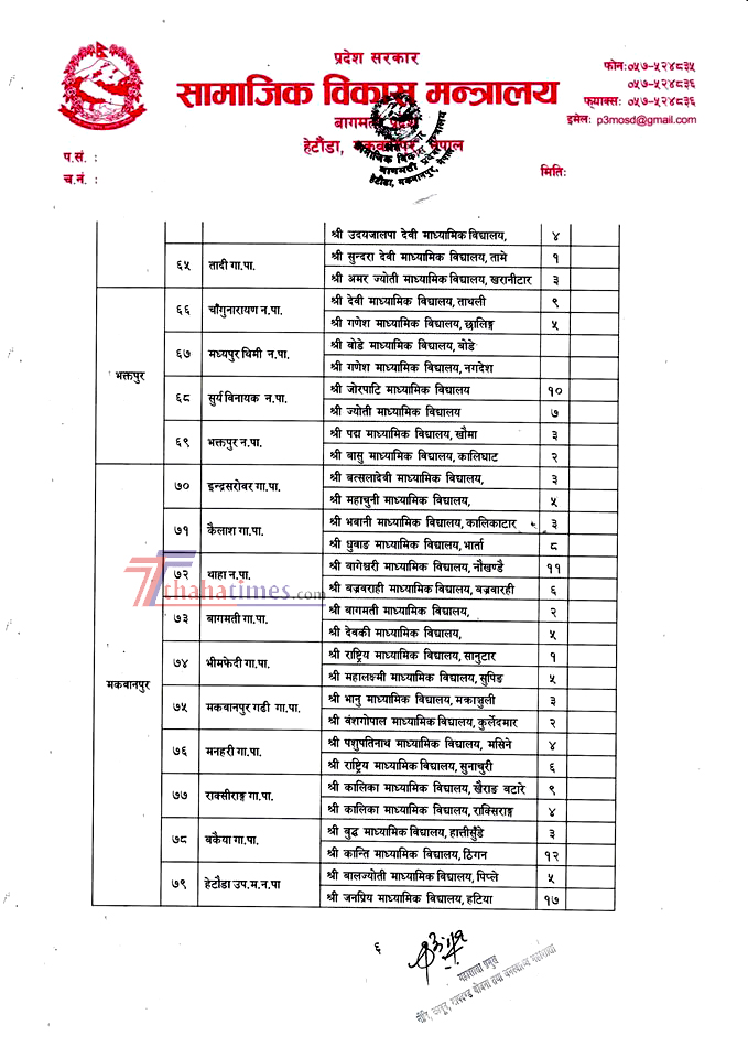 बज्रवाराही मावि  ।बागमती प्रदेशको प्रत्येक स्थानीय तहमा दुई वटा थप विद्यालयमा विद्यालय नर्स राख्ने कार्यक्रम अन्तर्गत आर्थिक वर्ष २०७७÷०७८ बाट मकवानपुरमा २० विद्यालयमा कार्यक्रम थपिएको छ ।