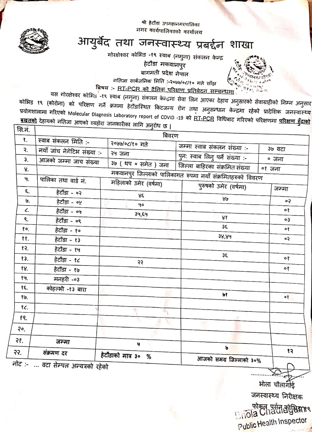 बिहिबार बिहान मकवानपुरमा १२ जनामा कोरोना पुष्टि