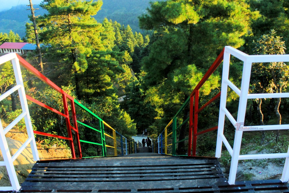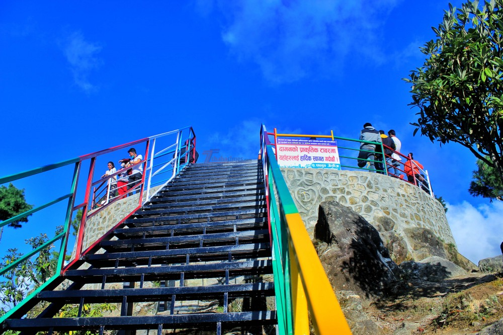 संस्कृति, पर्यटन तथा नागरिक उड्डयन मन्त्रालयको ५० लाख आर्थिक सहयोग र थाहा नगरपालिकाको सहजीकरणमा फलामे भर्‍याङसहित पार्क निर्माण गरिएको गोपालीले जानकारी दिए । ‘प्राकृतिक टाकुरामा पुगेर चारैतर्फको दृश्यावलोकन गर्न अब यो सिँढी चढेर जानुपर्नेछ । प्राकृतिक टाकुरासम्म पुग्न निर्मित भर्‍याङ नेपालकै अग्लो फलामे भर्‍याङ भएको अहिलेसम्मको हाम्रो दाबी हो’, उनले भने ।